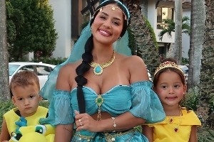 体育资讯11月3日讯 热火球星泰勒-希罗的女友Katya Elise Henry‌昨日在社媒晒出了自己的万圣节装扮,其中她COS阿拉丁神灯女主角,男友希罗COS野兽。