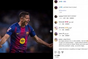首发上演帽子戏法!莱万社媒庆祝胜利:就是这么做的!