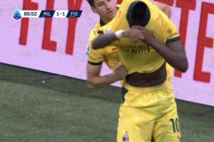 体育资讯10月20日讯 米兰vs佛罗伦萨,第86分钟莱奥点球破门助米兰反超,之后他想脱衣庆祝,被加比亚按住了!